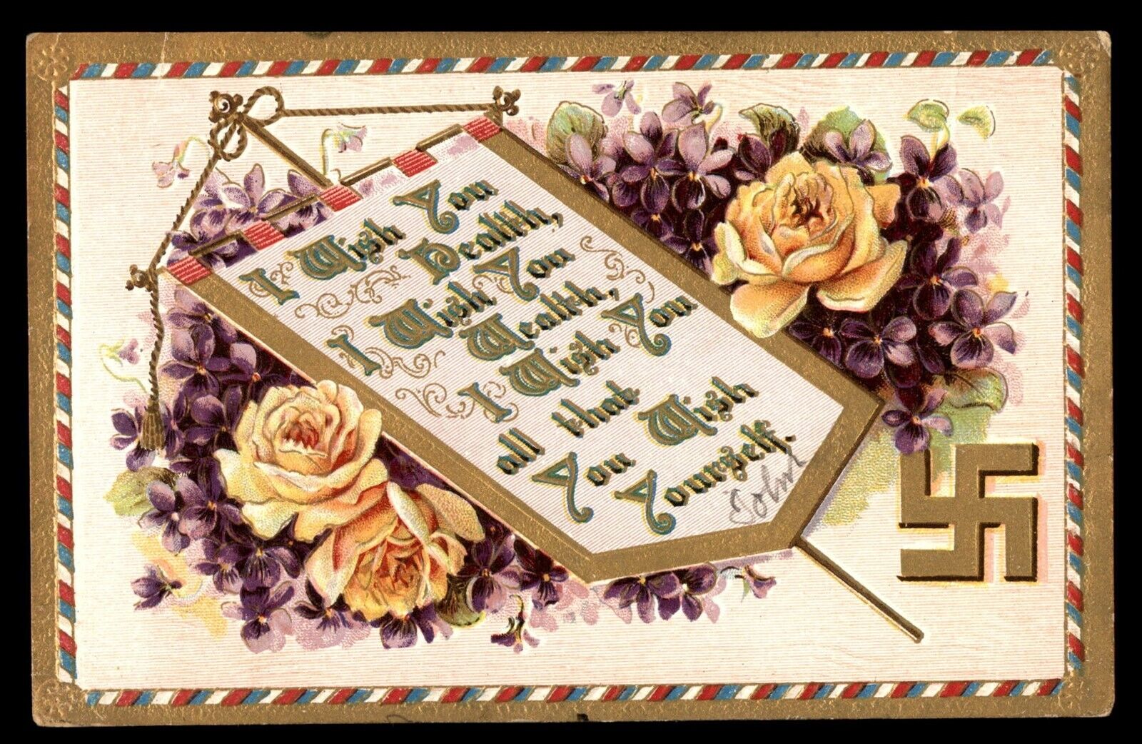 Mayfairstamps Greeting PC Flowers Peace Swastika Antique Embossed Postcard aac