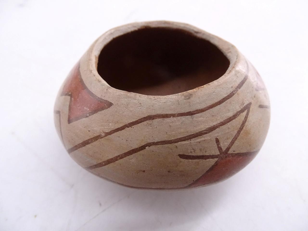 Title (ebay affiliate link): Native American Indian Art Pottery San Juan Pueblo Clay Primitive Bowl Pot O