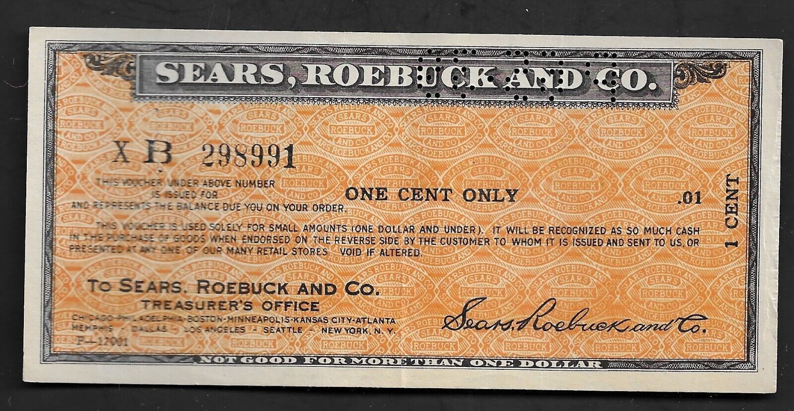 Title (ebay affiliate link): 1930s Sears Roebuck and Co. One Cent Vouch