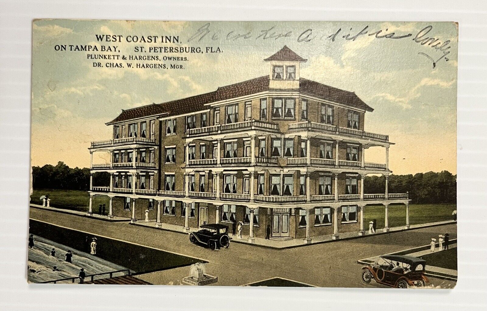 1914 Postcard West Coast Inn St. Petersburg Florida FL Antique Cars In Fro