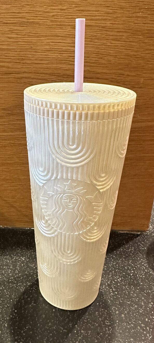 NEW Starbucks Spring 2023 Pearl White Scales Straw 24 Ounce Tumbler C