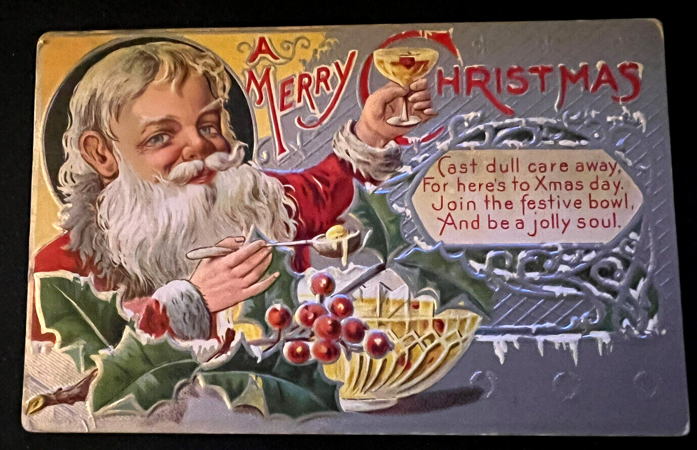 Jolly SANTA CLAUS Makes Champagne ToastAntique Embossed Christmas Postcardd8