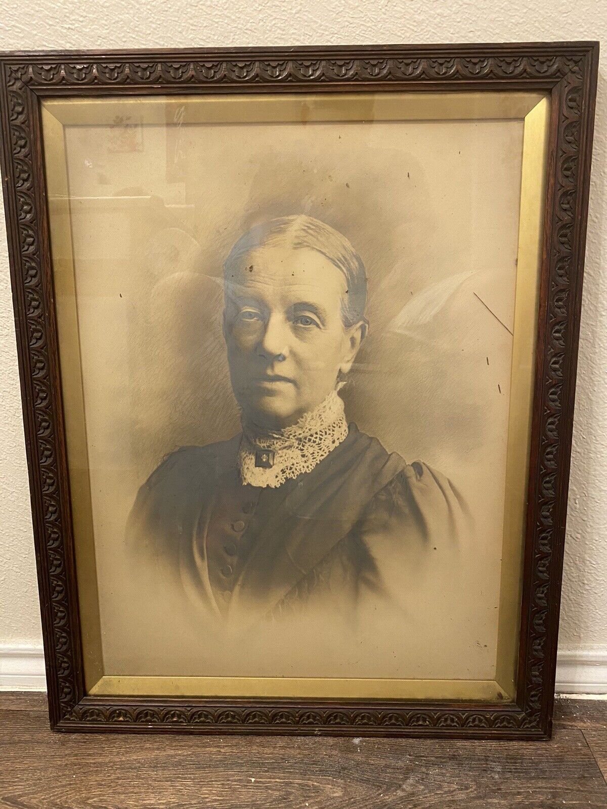 Haunted Antique Civil war era photograph of old woman in original frame 28x