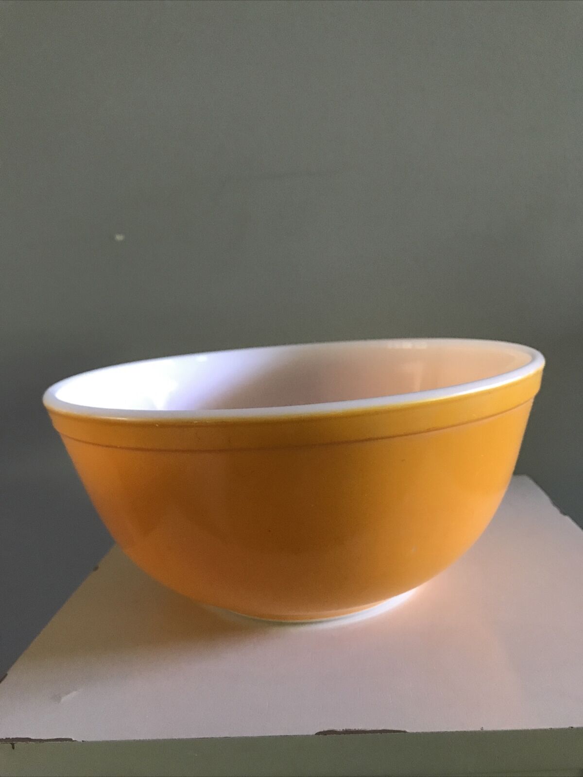 Title (ebay affiliate link): Vintage Pyrex Citrus Orange Gold Mustard 403 Mixing Nesting Bowl 21/2