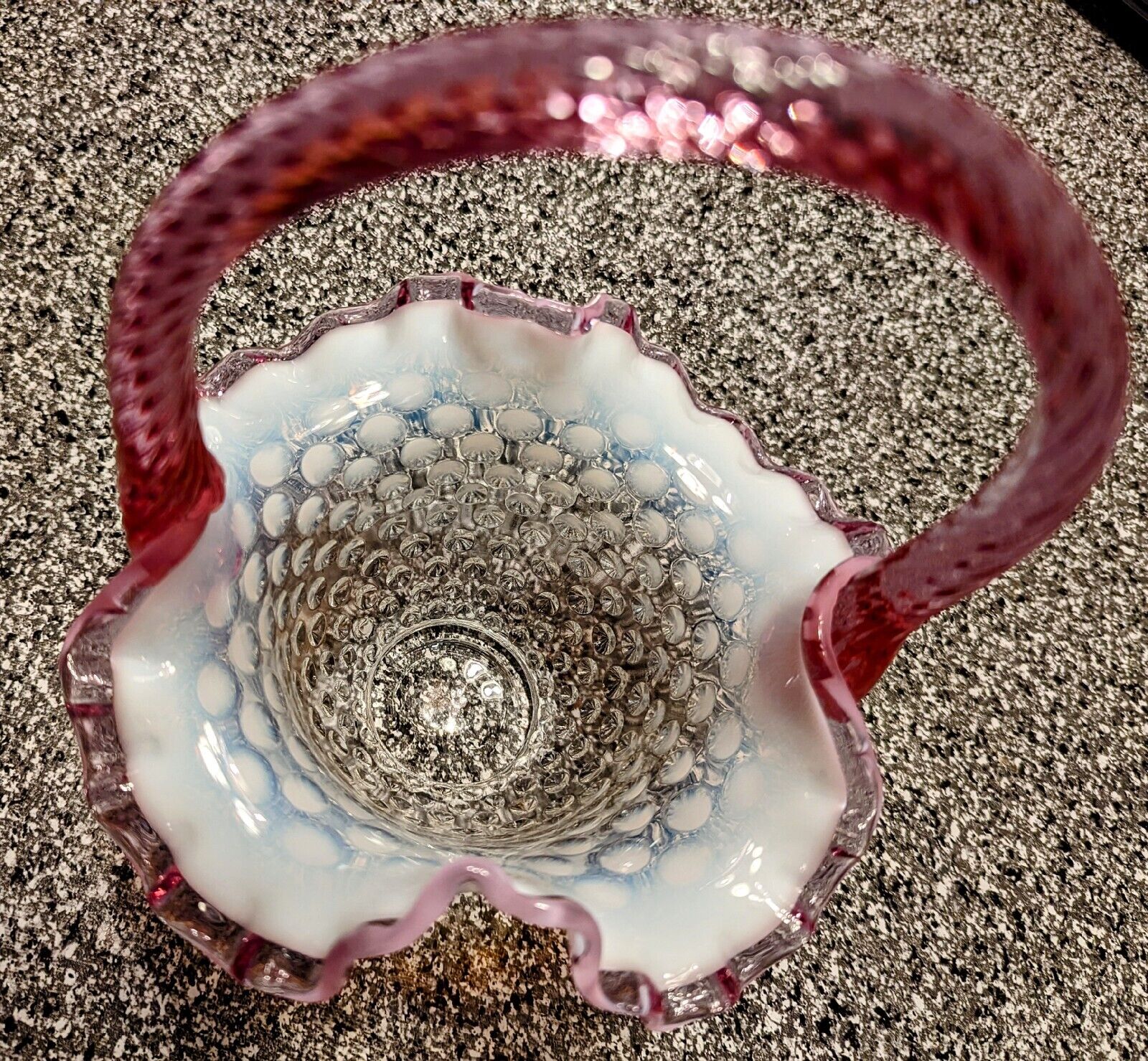 Fenton Hobnail Milk glass vase Pink White Opalesce