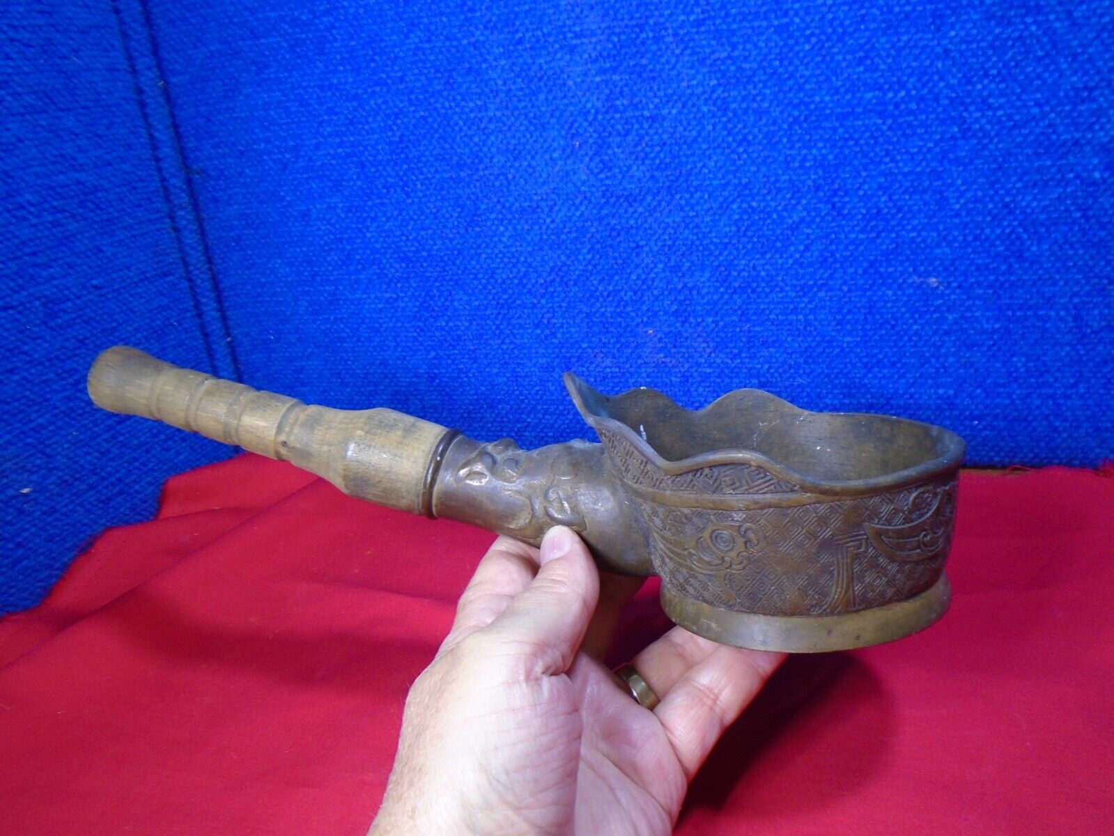 Title (ebay affiliate link): PRIMITIVE EMBOSED BRASS/BRONZE WOOD HANDLE CUP SK200. LIBATION CU