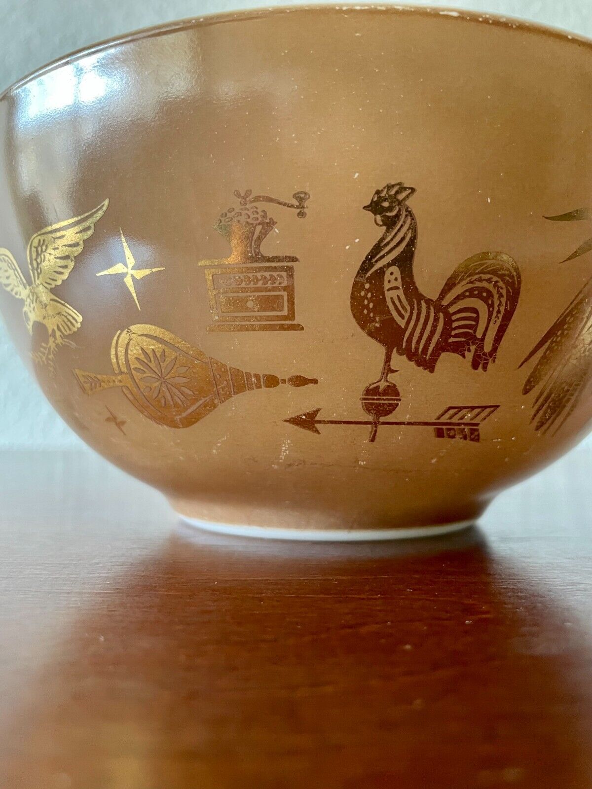 Title (ebay affiliate link): PYREX 442 Americana Vintage Cinderella Nesting Mixing Bowl 1 1/2 Qt Gold/Brow