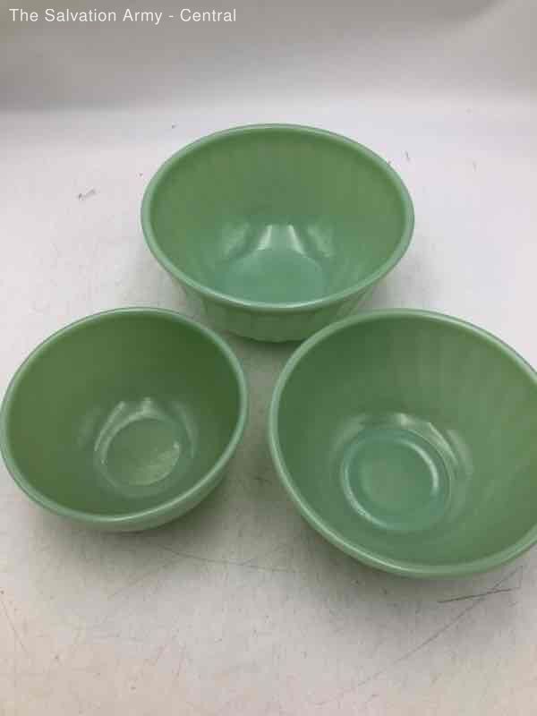 Fire King Green Milk Glass Oven Safe Set Of 3 Glass Mixing Bow