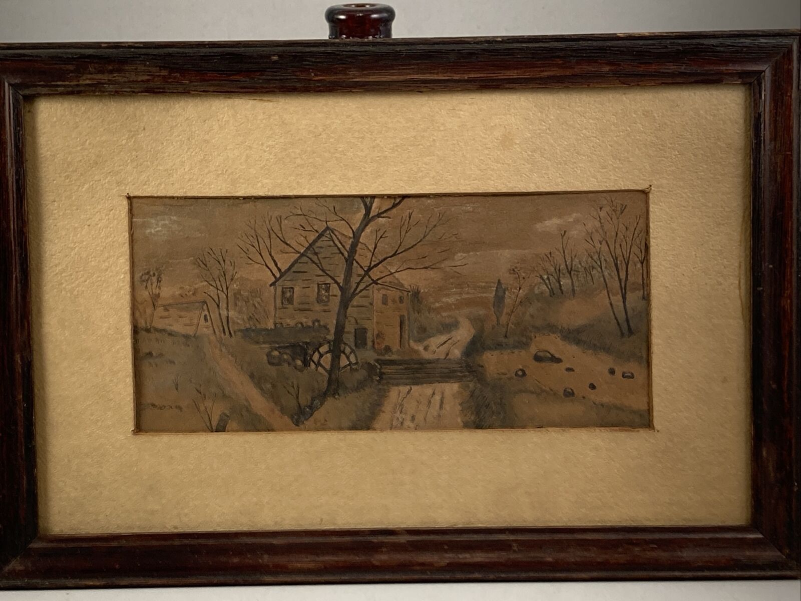 Title (ebay affiliate link): Antique Original Watercolor Gristmill Folk Art 734x3 1/23411 1/234 x 834 w/Fra