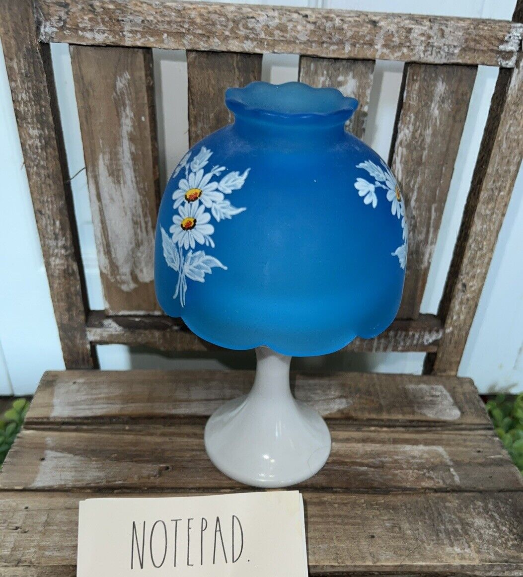 Vintage Milk Glass And Frosted Blue Flowered Fairy Lamp Light MIN