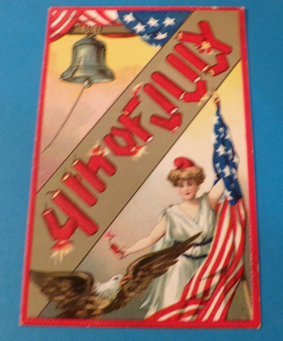 ANTIQUE PATRIOTIC AMERICANA 4th OF JULY POSTCARD COLORFUL SCRAPBO