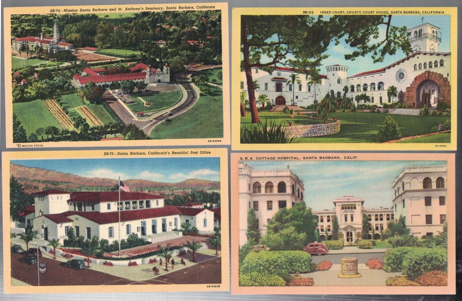 7 ANTIQUE 1940S SANTA BARBARA CALIFORNIA POSTCA