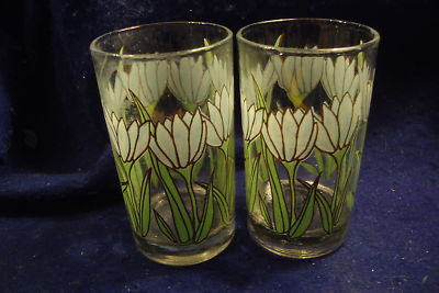 GRANDMAS GLASS PAIR OF 5 INCH FLOWERED TUMBLERS