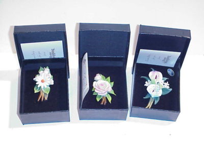 Boxed Lot of 3 Capodimonte Flower Lapel Pins Belfiore