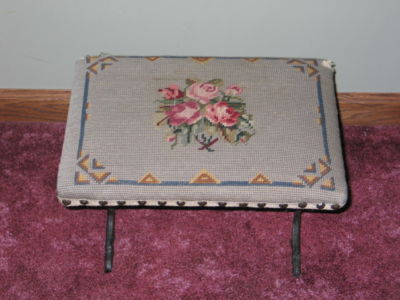 Title (ebay affiliate link): Antique 1930-40's Cast Iron Claw Foot Stool~Needlepoint