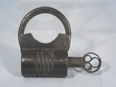 INTERESTING 18thC LARGE IRON PADLOCK WITH KEY