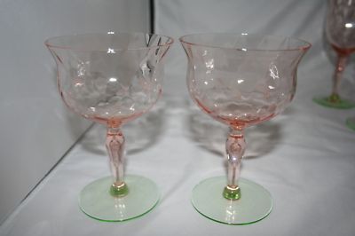 PINK AND GREEN WATERMELON GLASS WINE GOBLETS