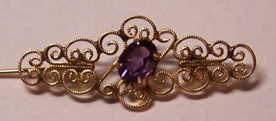 Title (ebay affiliate link): ANTIQUE GF FILIGREE FACETED AMETHYST "WINARD" BROOCH