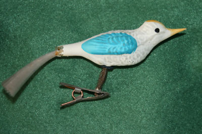 Title (ebay affiliate link): ESTATE GLASS VINTAGE CLIP ON BIRD BLUE WHITE ORNAMENT