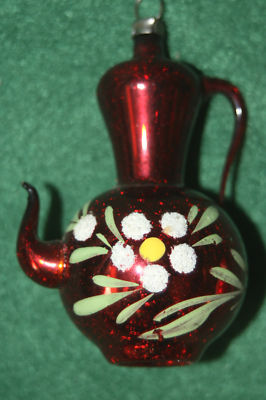 ESTATE GLASS VINTAGE RED TEAPOT ORNAMENT