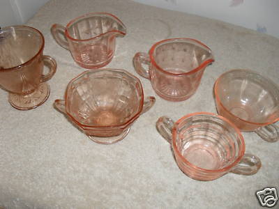 CUPS AND CREAMERS PINK DEPRESSION GLASS