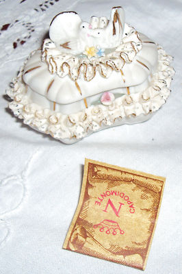Title (ebay affiliate link): VINTAGE CAPODIMONTE LIDDED TRINKET BOX ITALY ROSE/DOVE