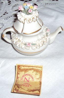 VINTAGE CAPODIMONTE PETIT LIDDED TEA POT ITALY ROSES