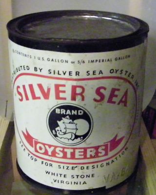 oyster tin-Silver Sea White Stone,Va-84 gal./lid