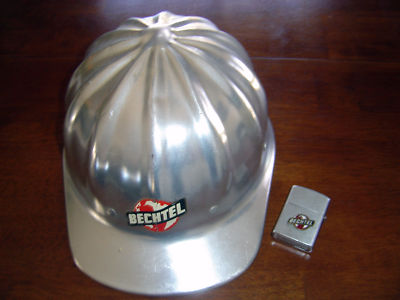 VINTAGE BECHTEL FIBRE METAL HARD HAT AND LIGHTER SET