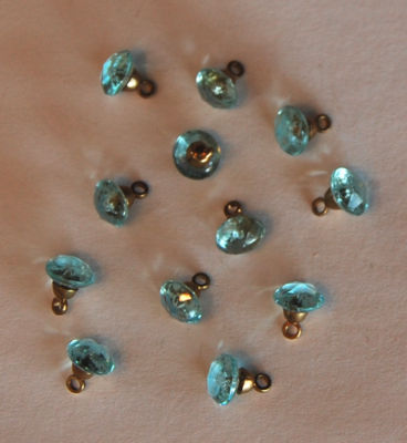 VINTAGE ANTIQUE SMALL DOLL GLASS SHOE BUTTON AQUA 7mm