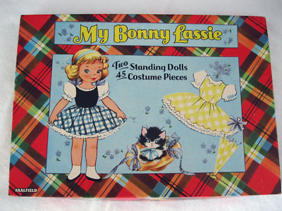 Title (ebay affiliate link): Vtg Saalfield Boxed Paper Doll Set Uncut Bonny Lassie