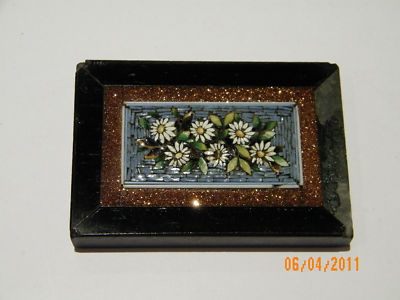 ANTIQUE ITALIAN GOLDSTONE MOSAIC SLATE PAPERWEIGHT