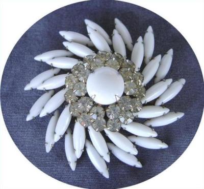 Vintage Judy Lee Swirling Milk Glass Rhinestone Brooch