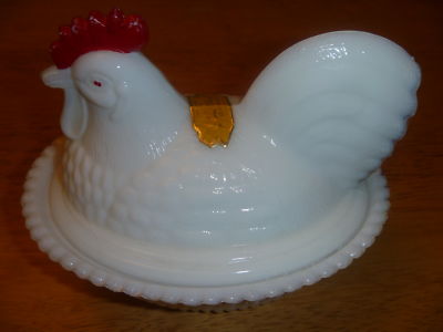 Vintage White Milk Glass Hen Chicken on Nest J Kemple