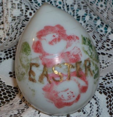VTG Antique Hand BLOWN MILK GLASS PAINTED EASTER EGG