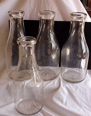 (4) Different Glass Milk Bottles~R.I.II S,Mass B B Seal