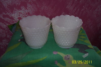 2 milk glass hobnail -bowl or planter 4 1/4 in. tall
