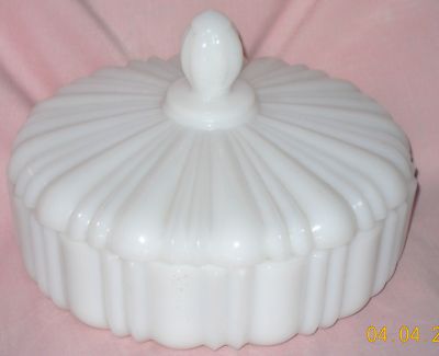 Vintage Hocking Old Cafe Milk Glass Candy Dish with Lid