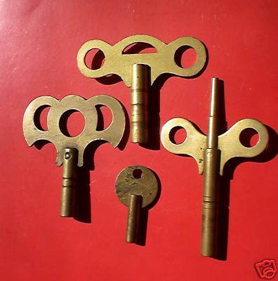 SET OF 4 ANTIQUE BRASS CLOCK KEYS COOL L@@K