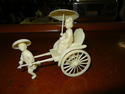 Vintage celluloid toy rickshaw & geisha girl Japan tag