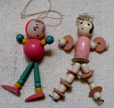 Vintage Pair of Wooden Toys Goodly Eyed Art Deco Girls