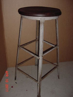 Title (ebay affiliate link): ANTIQUE INDUSTRIAL MACHINE AGE SHOP STOOL WOOD SEAT #1
