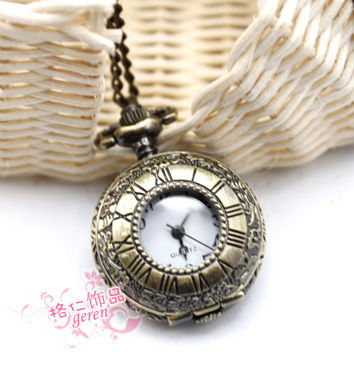 ANTIQUE CUTE ROME CLOCK BRASS WOMAN NECKLACE WATCH #216