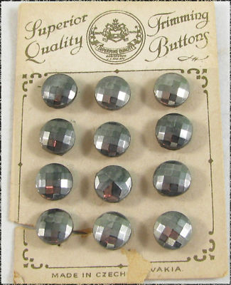 12 Antique Diminutive Glass Buttons - Black w/ Silver