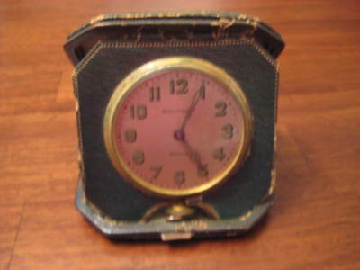 RARE ANTIQUE CAR DASH CLOCK " WALTHAM " WITH CASE;