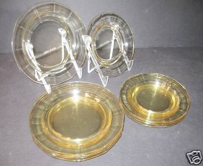 SET OF 10 AMBER/ YELLOW DEPRESSION GLASS PLATES