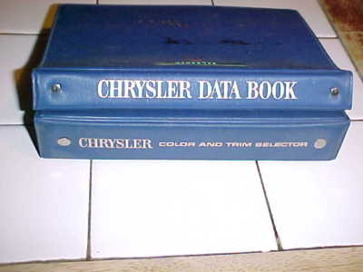 Title (ebay affiliate link): 1967 CHRYSLER DATA BOOK WITH COLOR AND FABRIC BOOK