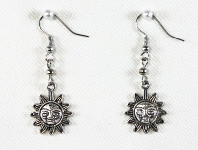 Antique Tibetan Silver Sun Face Dangle Earrings