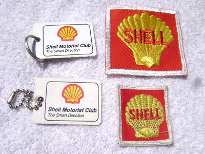 Title (ebay affiliate link): VINTAGE LOT OF FIVE SHELL STUFF PATCHES, KEYCHAINS