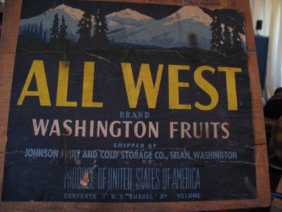 Vtg 40's 50's Fruit Crate Label on wood - All West